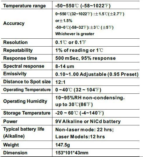This infrared thermometer is used for measuring the temperature of the object's surface, which is applicable for various hot, hazardous or hard-toreach objects without contact safely and quickly.